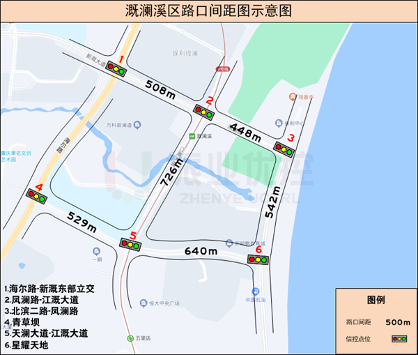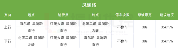(1)鳳瀾路綠波雙向不停車,綠波帶寬38s,建議速度35km/h。