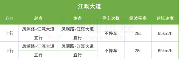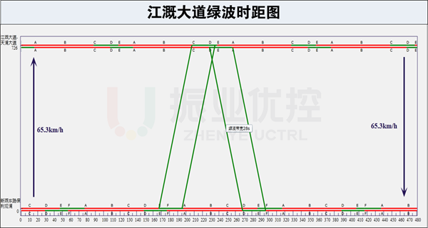 (2)江溉大道綠波雙向不停車,綠波帶寬28s,建議速度65km/h。