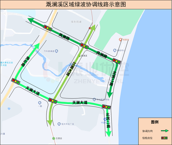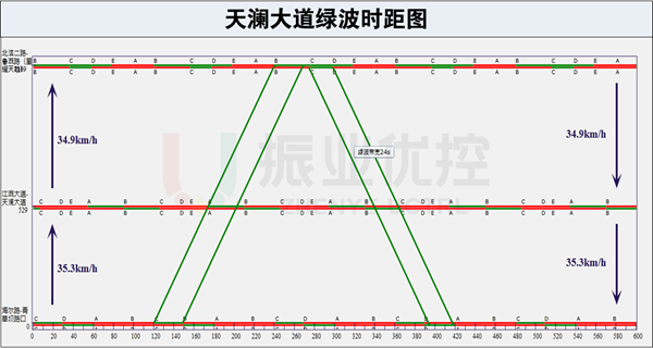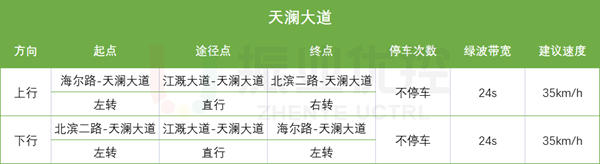 (3)天瀾大道綠波雙向不停車,綠波帶寬24s,建議速度35km/h。
