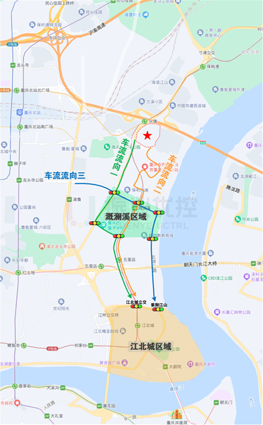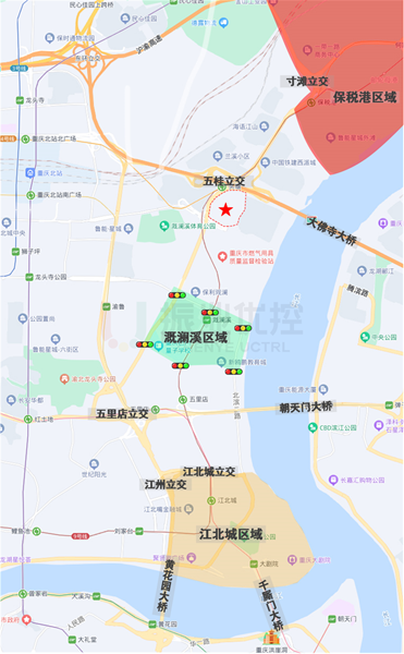 溉瀾溪片區(qū)位于重慶市江北區(qū)東部,北連寸灘港、保稅港,南接五里店、江北嘴。片區(qū)主要道路有鳳瀾路、江溉大道、天瀾大道,共6個(gè)信號控制路口,日常通行需求較大。