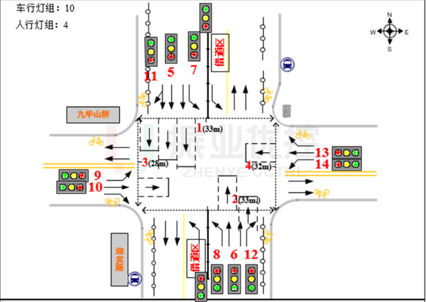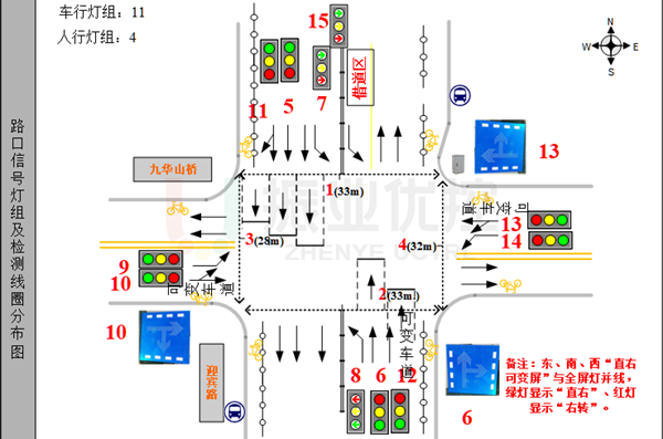 - 結(jié)合路口車道分配及放行方式,調(diào)整路口燈具,使其符合規(guī)范并滿足控制需求。