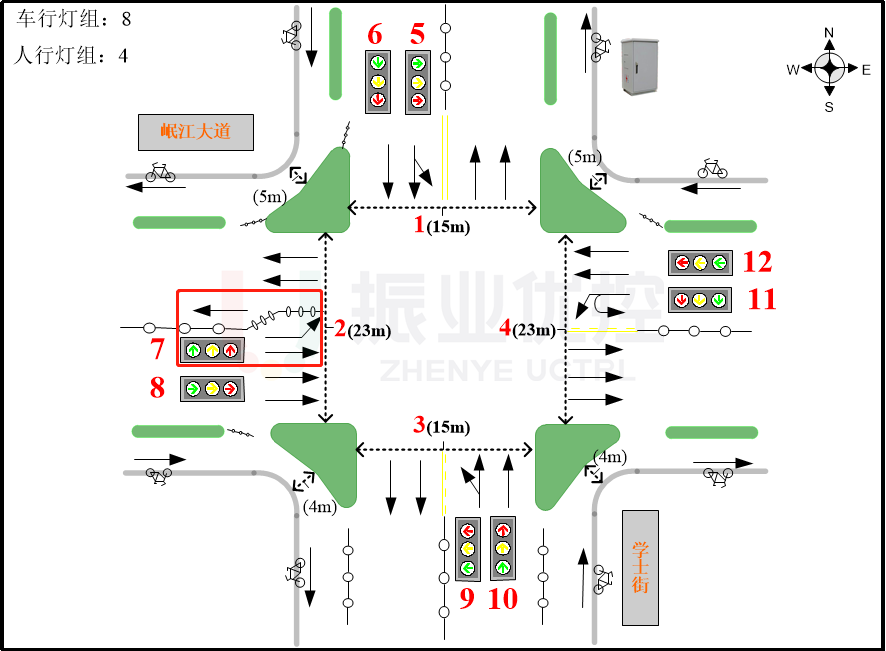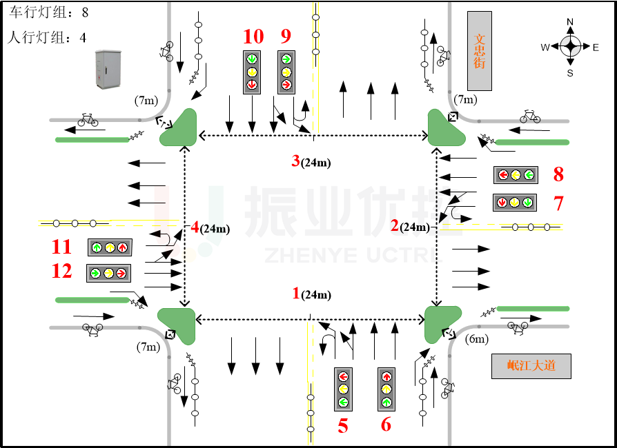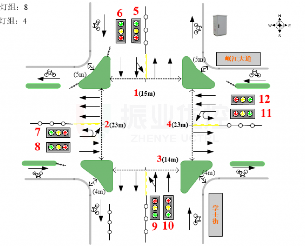 通過擴展西進口左轉(zhuǎn)車道的方式,增加進口道數(shù)量,將“2直1左”改為“3直1左”;并根據(jù)路口實際通行情況對信號配時進行精細化調(diào)整。