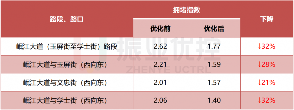 岷江大道(玉屏街至學(xué)士街)路段西向東擁堵指數(shù)、排隊長度大幅下降,通行環(huán)境得到了有效改善。