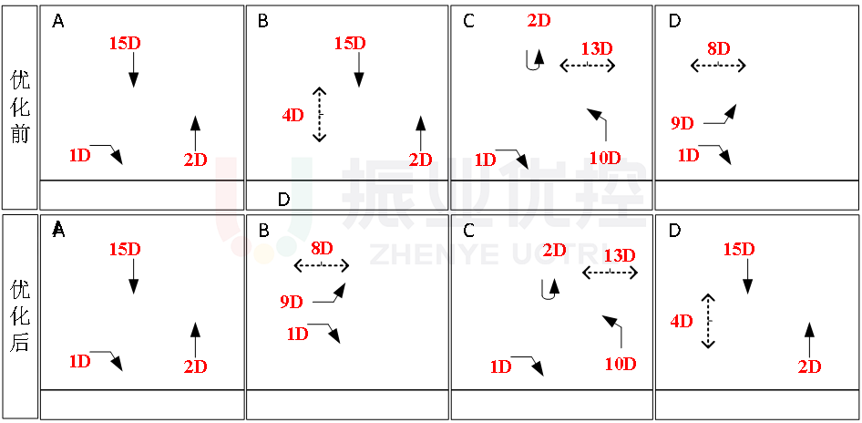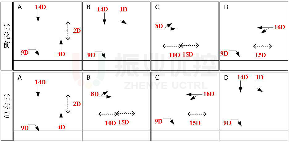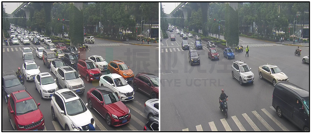 本案例中,兩江配時(shí)中心通過實(shí)地調(diào)研、測試路段情況掌握一手真實(shí)數(shù)據(jù),對金開大道鴛鴦片區(qū)路口進(jìn)行相序與周期優(yōu)化調(diào)整,針對路口流量變化頻繁、間距過短造成的回溢擁堵問題,通過“自適應(yīng)控制+雙向動(dòng)態(tài)綠波協(xié)調(diào)”設(shè)計(jì),有效減少了車輛停車次數(shù),改善了路口交通環(huán)境,同時(shí)提高了路段整體車速與市民行車體驗(yàn)感、舒適感。