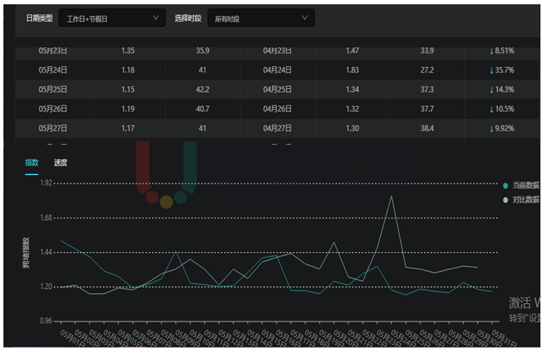 全天擁堵延時(shí)指數(shù)下降明顯,平均指數(shù)下降10%以上,效果良好。