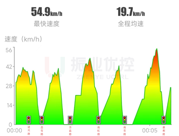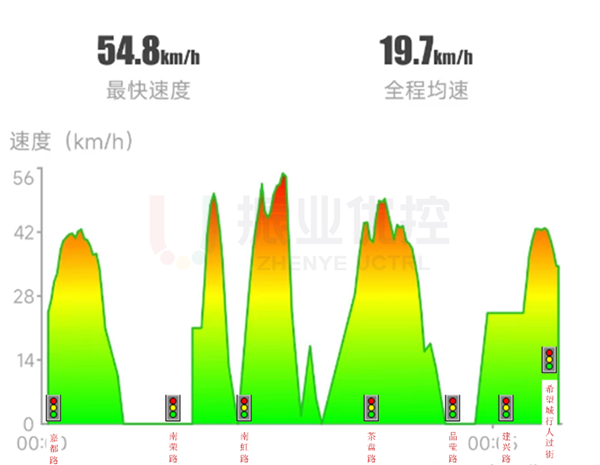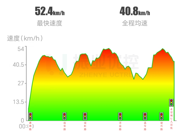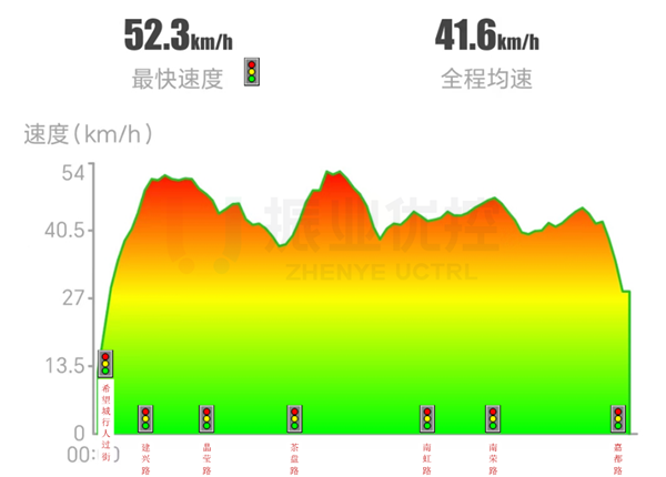 嘉南路雙向平均行程時間由5分鐘50秒縮短至2分40秒,平均通行速度由19.7km/h提升到41.2km/h,平均停車次數(shù)由4次變?yōu)椴煌\囃ㄟ^,通行效率得到大幅提升。
