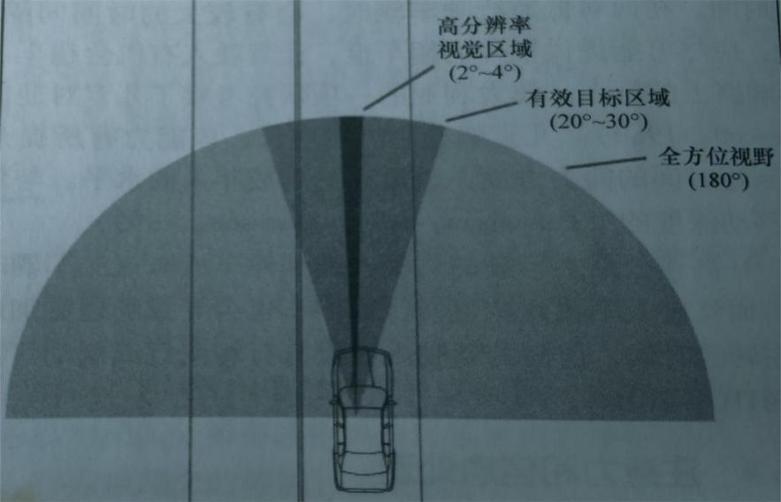 還有一個(gè)重要特點(diǎn)是有效視野。研究表明,大多數(shù)目標(biāo)是在距離視線不到15°的區(qū)域被發(fā)現(xiàn)的。任務(wù)要求越高,“視錐”或“有效視野”就越窄,駕駛?cè)税l(fā)現(xiàn)外圍目標(biāo)的可能性就越小(如圖2)。這也就是為什么在車(chē)速越高時(shí)視野越窄的原因。分心駕駛也與視覺(jué)處理能力有關(guān)。