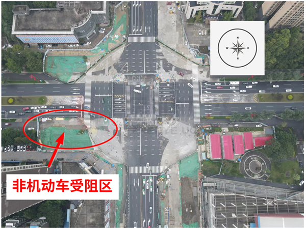 - 非機動車行車軌跡受阻,導致西進口道機非混行嚴重