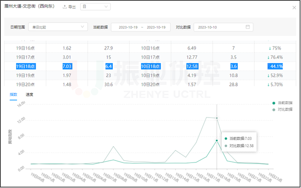根據(jù)互聯(lián)網(wǎng)平臺指標分析,優(yōu)化前最高擁堵指數(shù)為12.58,優(yōu)化后同一時段的擁堵指數(shù)為7.03,降低了44.1%。