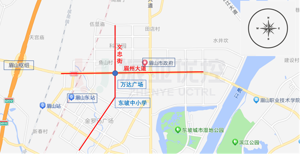 眉山大道是眉山市主城區(qū)連接岷東新區(qū)的重要通道,眉州大道與文忠街交叉口位于該道路中段,為重要節(jié)點。交叉口周邊毗鄰機關(guān)單位、商業(yè)廣場及大型車流集散點,交通業(yè)態(tài)豐富。