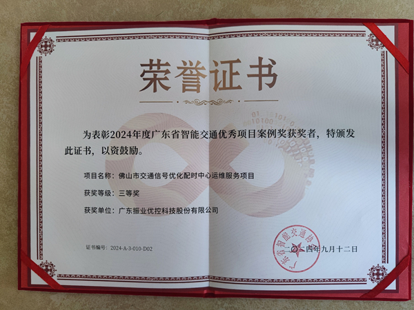 此外,主辦方還舉辦了頒獎(jiǎng)盛典,我司“佛山市交通信號(hào)優(yōu)化配時(shí)中心運(yùn)維服務(wù)項(xiàng)目”榮獲2024年度廣東省智能交通協(xié)會(huì)優(yōu)秀項(xiàng)目案例獎(jiǎng)三等獎(jiǎng)。該項(xiàng)目通過(guò)組建佛山市交通信號(hào)配時(shí)中心,建立城市交通信號(hào)管理機(jī)制,提供城市交通緩堵輔助決策服務(wù),落實(shí)城市交通信息智能決策支持體系,對(duì)佛山市交通信號(hào)控制進(jìn)行優(yōu)化。